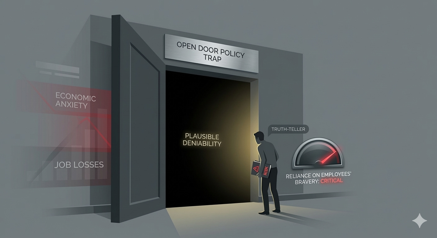 The fundamental flaw of the Open Door Policy is that it places the entire burden of risk on the employee. It requires the least powerful person in the room to summon the courage to walk into the most powerful person’s office and deliver bad news.