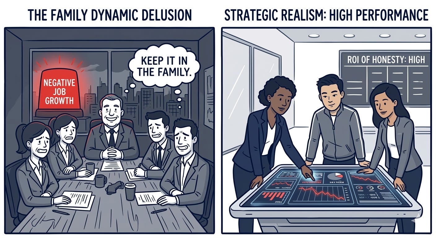 When a leader or organization says, “We are a family here,” it sounds comforting. But see it for what it is. In practice, it is often a mechanism for control. Healthy families offer unconditional love; dysfunctional corporate families demand unconditional loyalty. They expect you to sacrifice your professional boundaries for the group, and most importantly, they demand that you keep the “dirty laundry” in the house.